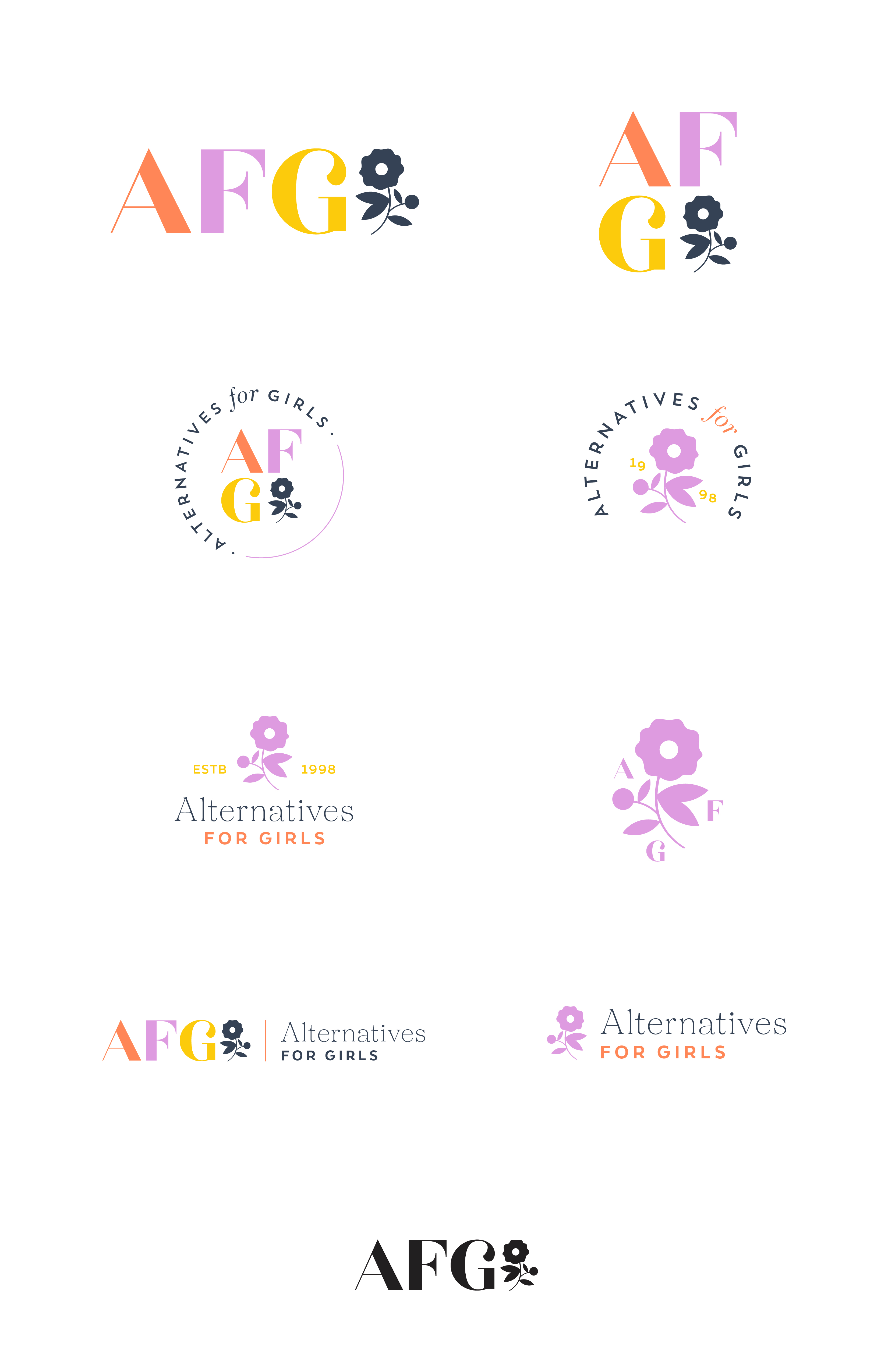 These are a few logo designs modernizing AFG’s logo. They asked for a flower to be included again. I used classic but feminine fonts and fresh color palettes to show the idea of growth.