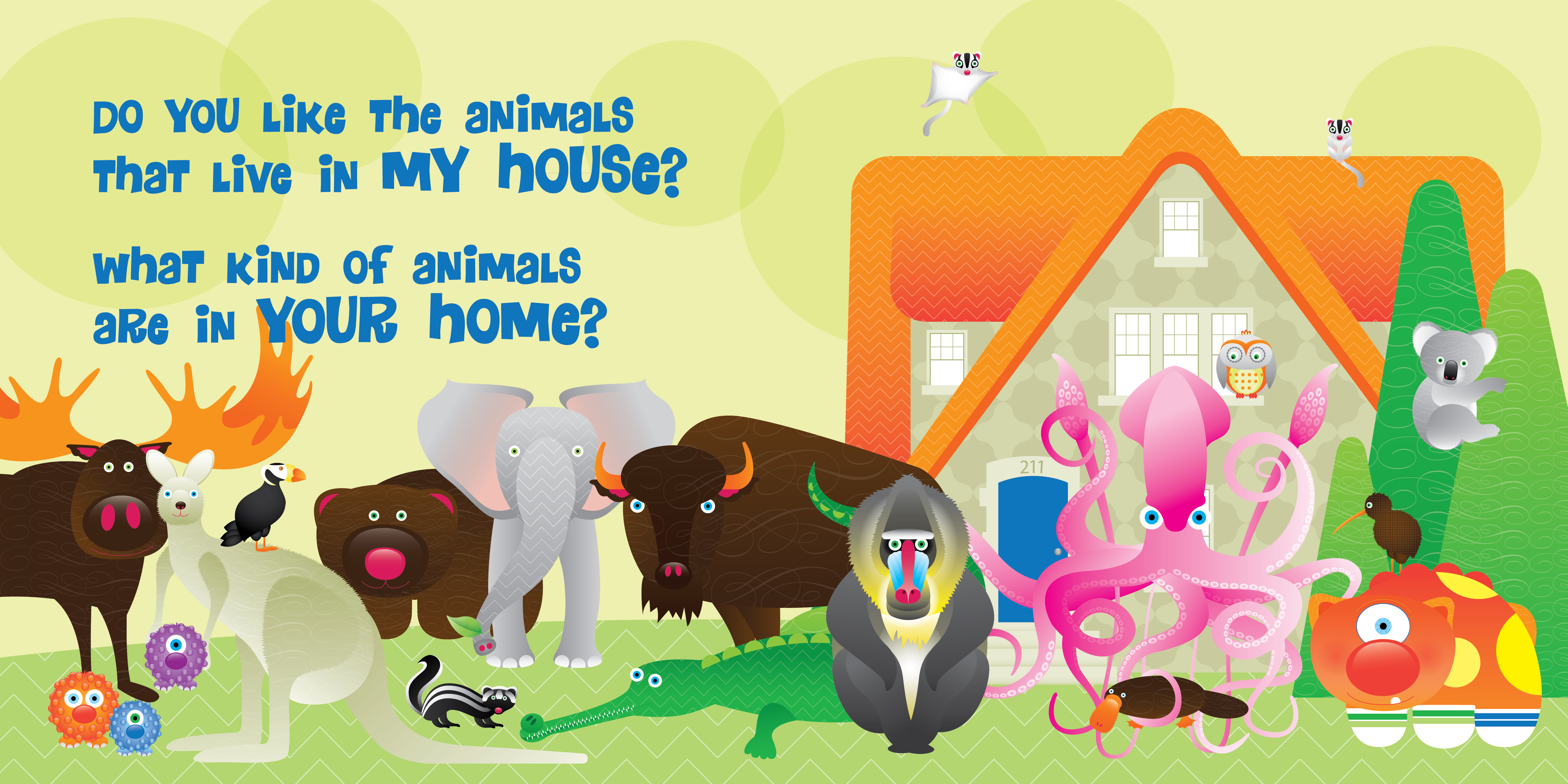 This is a book about a monster named Willoughby and all the unusual animals he shares his house with. It was published in 2011. Above are sampled illustrations from the book.