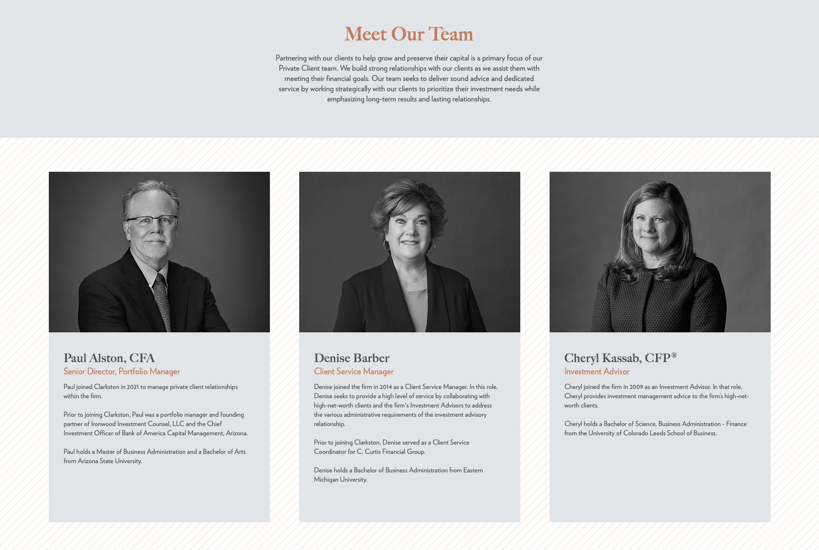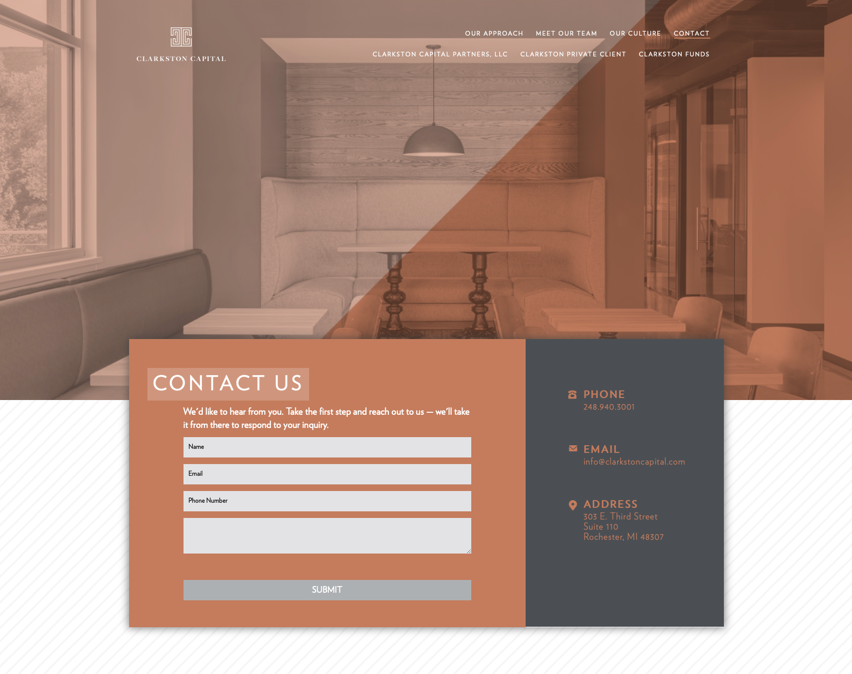 I designed every aspect of two websites for this client. I worked with a programmer for Clarkston Capital and designed Clarkston Private Client in Wix.