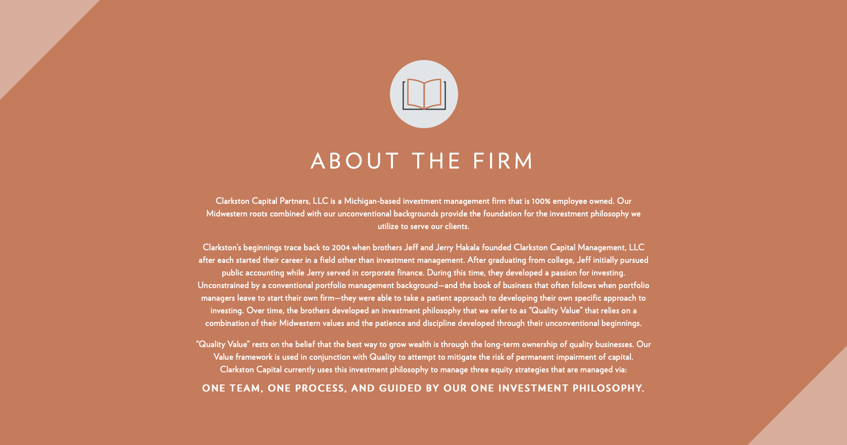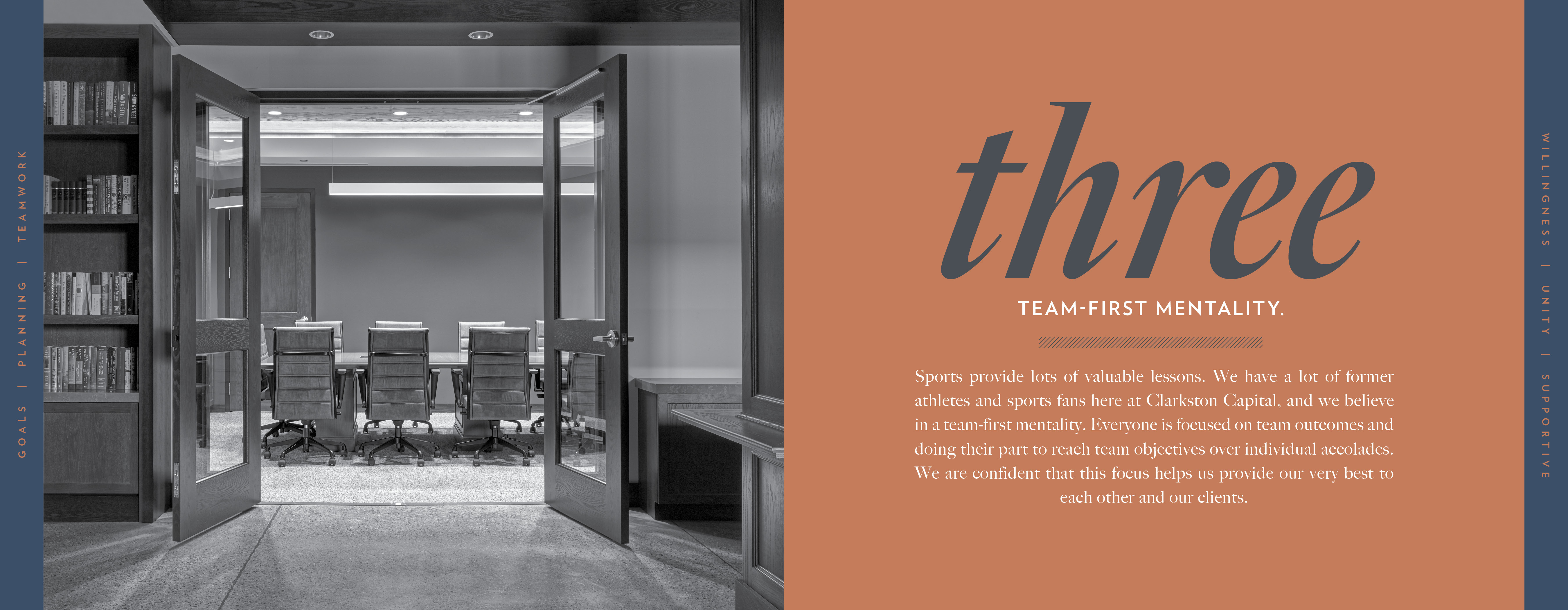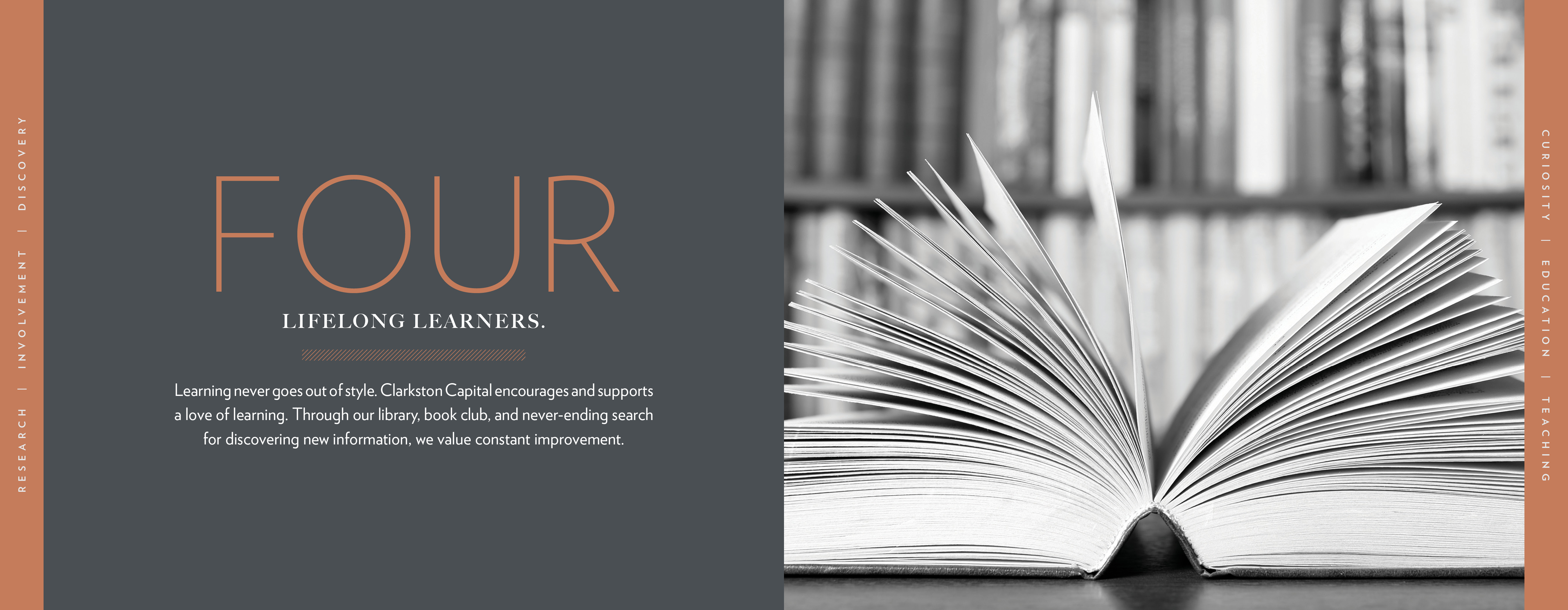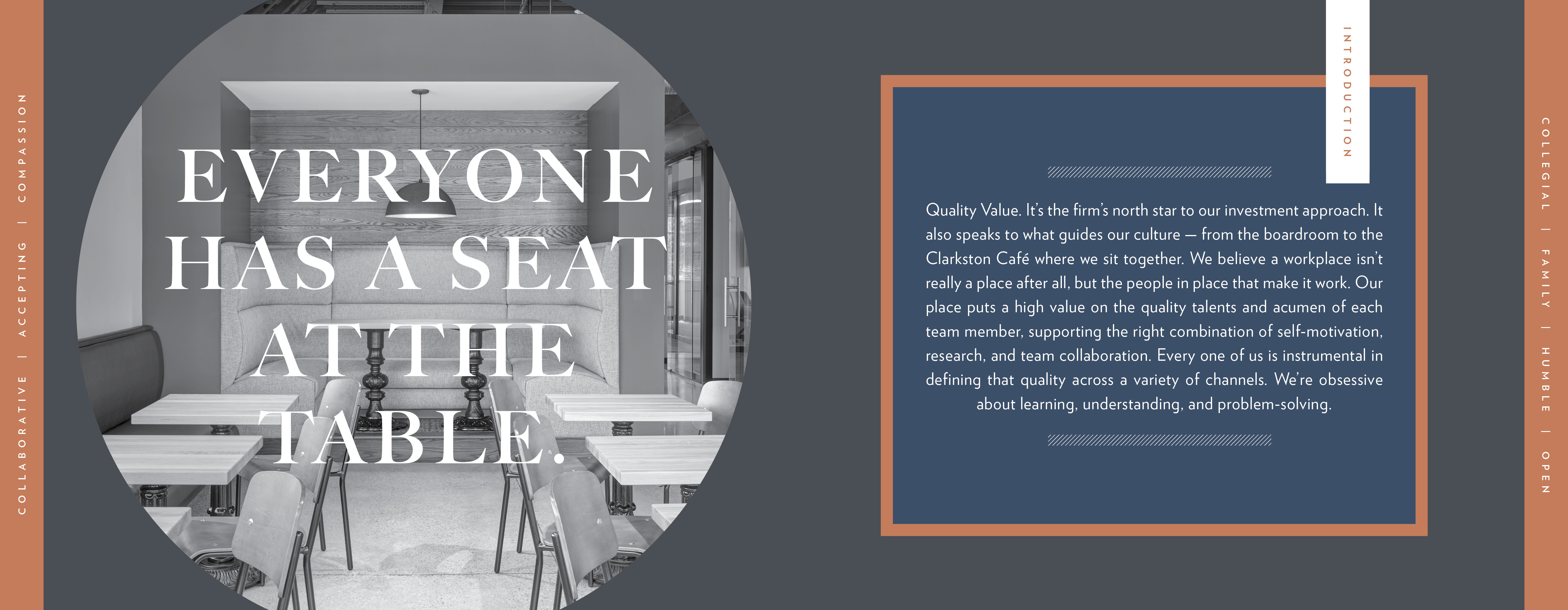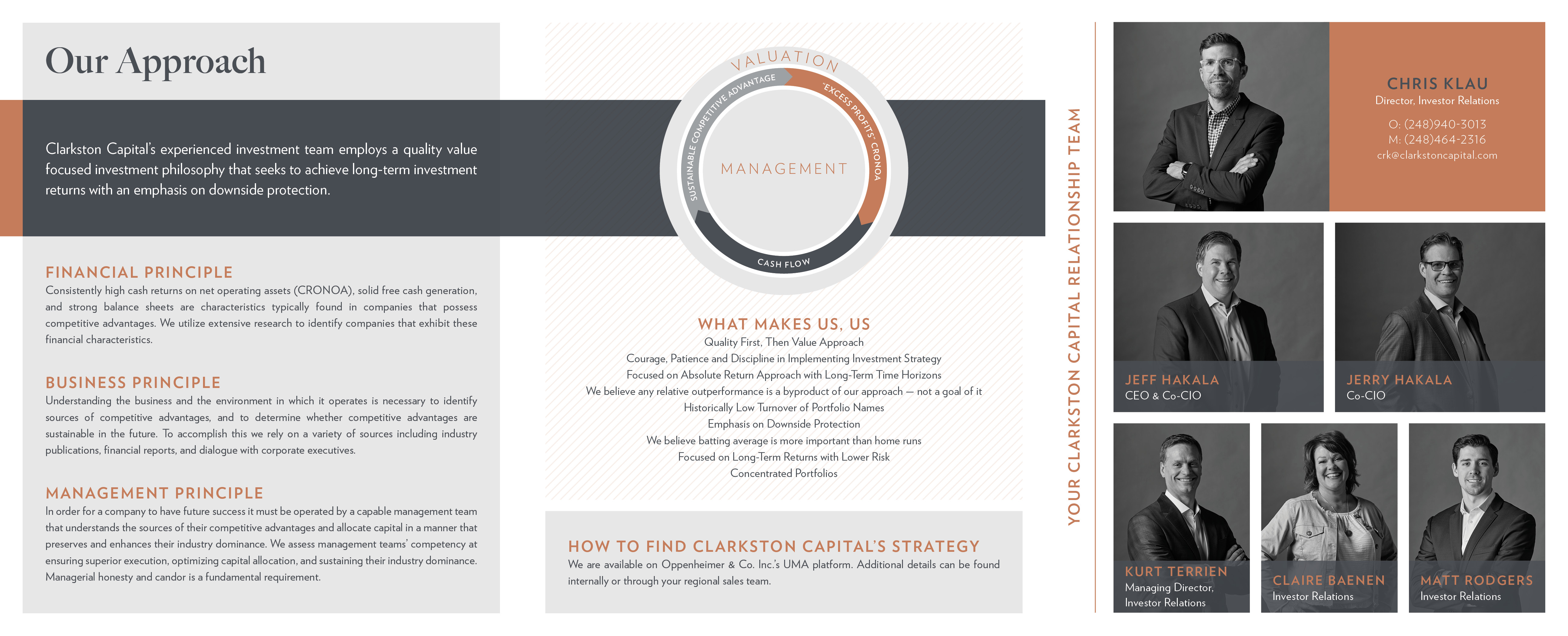 This brochure dives deeper into the culture of Clarkston Capital. It is used internally as well as for prospective clients. It was printed and used as a digital flip book on the website.