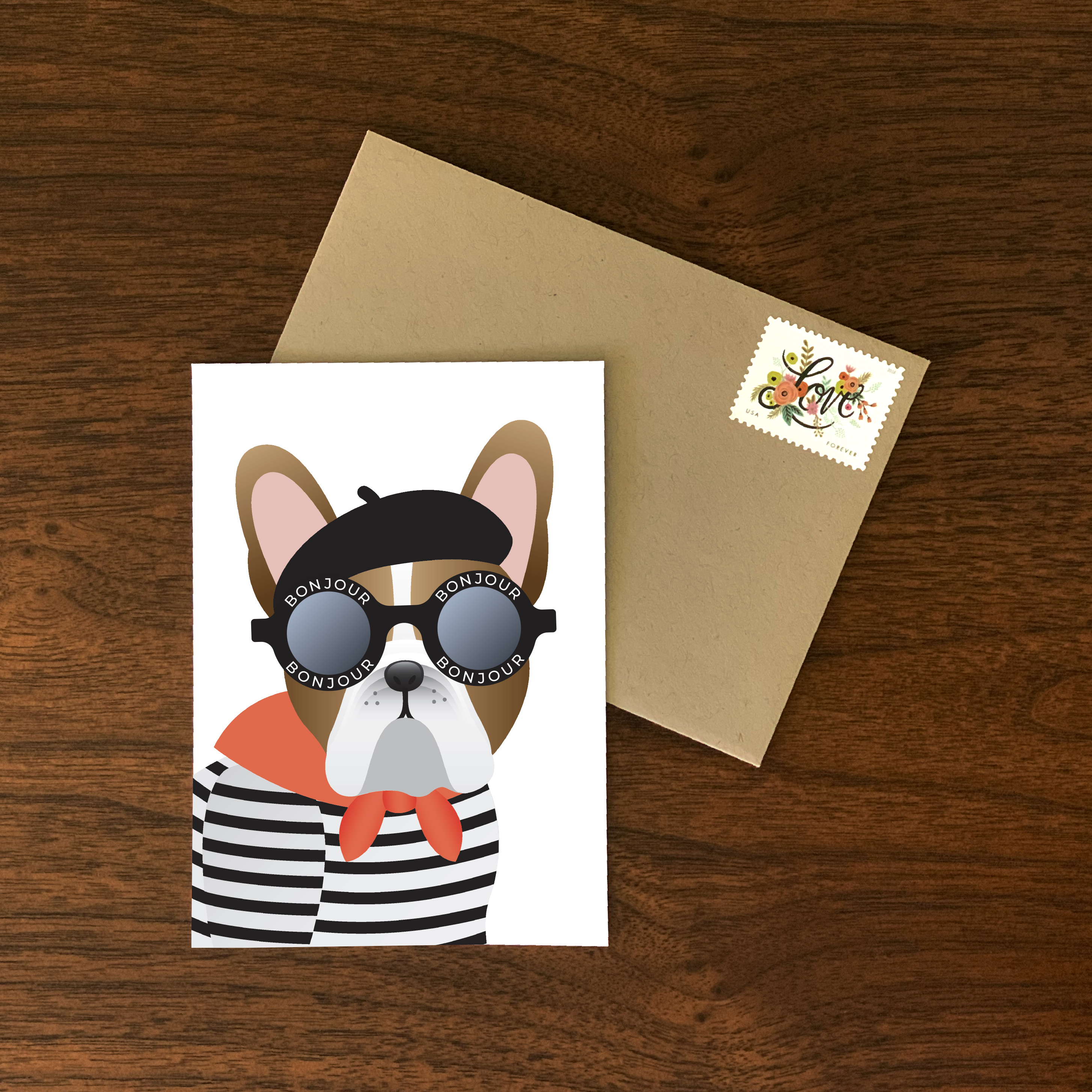 in 2014, illustrating and designing French Bulldog goods inspired by my crazy/cute Frenchie. I am a one woman shop, doing everything from concept to shipping.