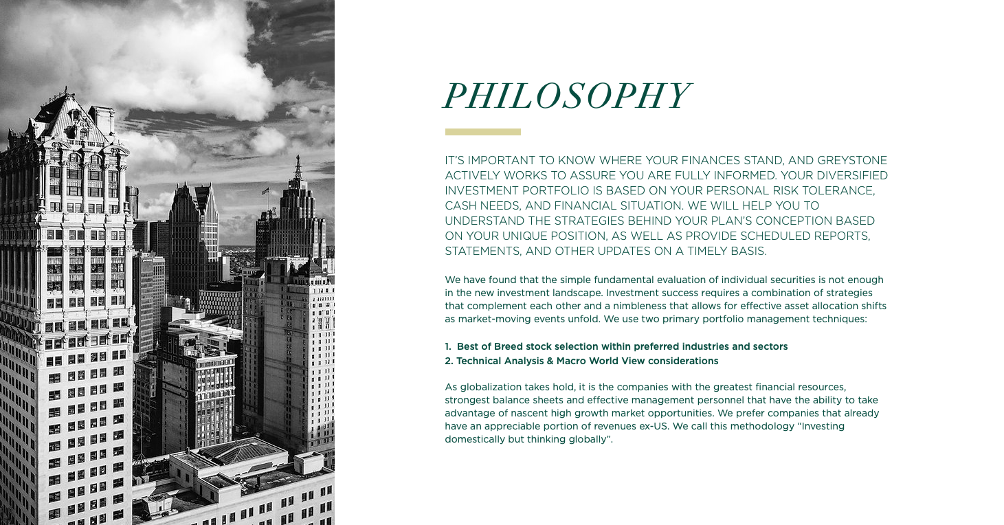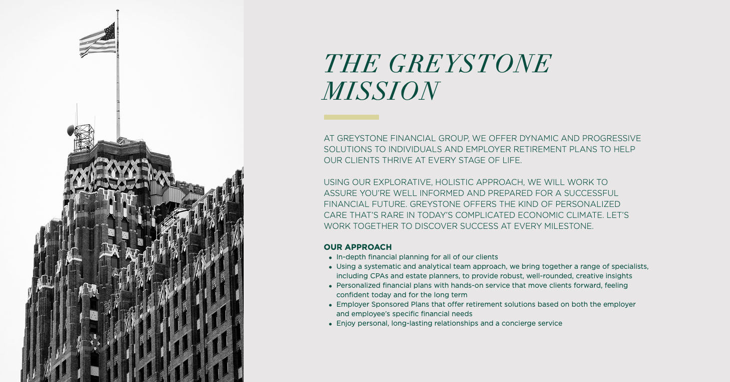 I designed Greystone’s phase one website using the new logo and style guide, as well as imagery from Detroit and Houston, where their two offices are located.