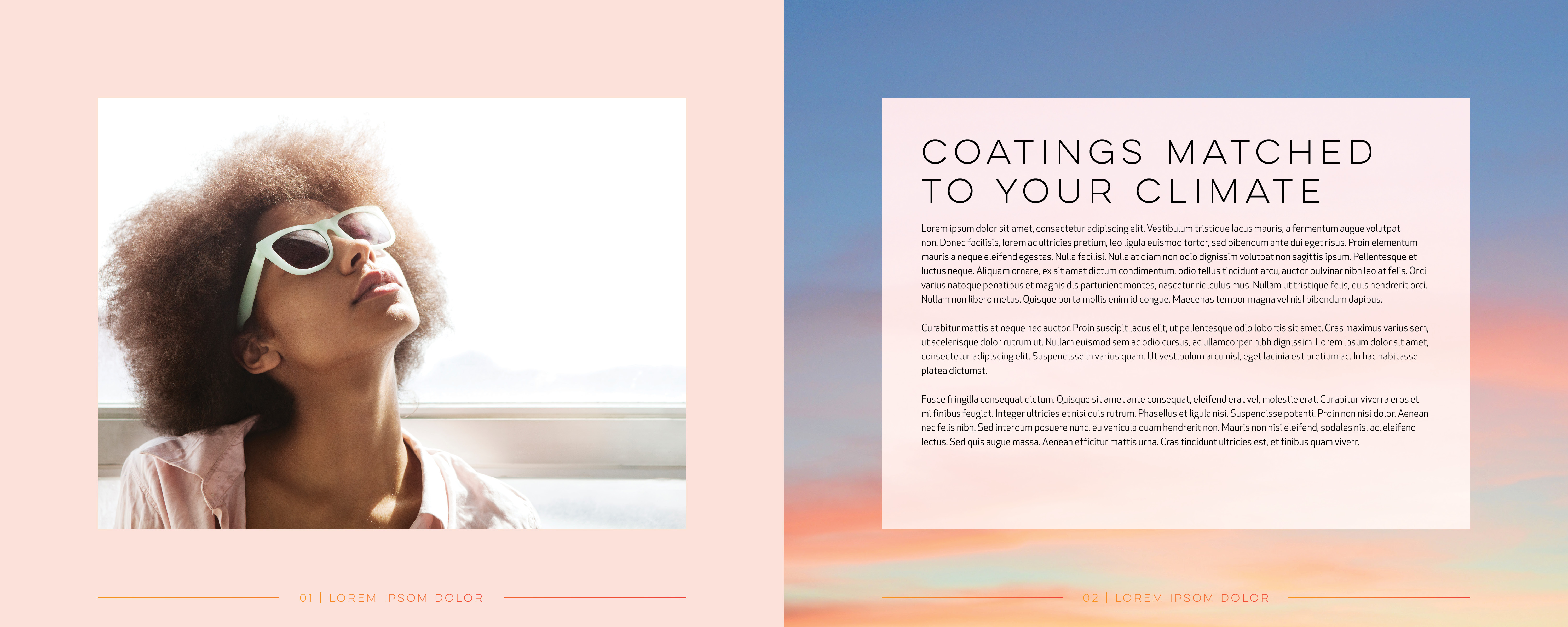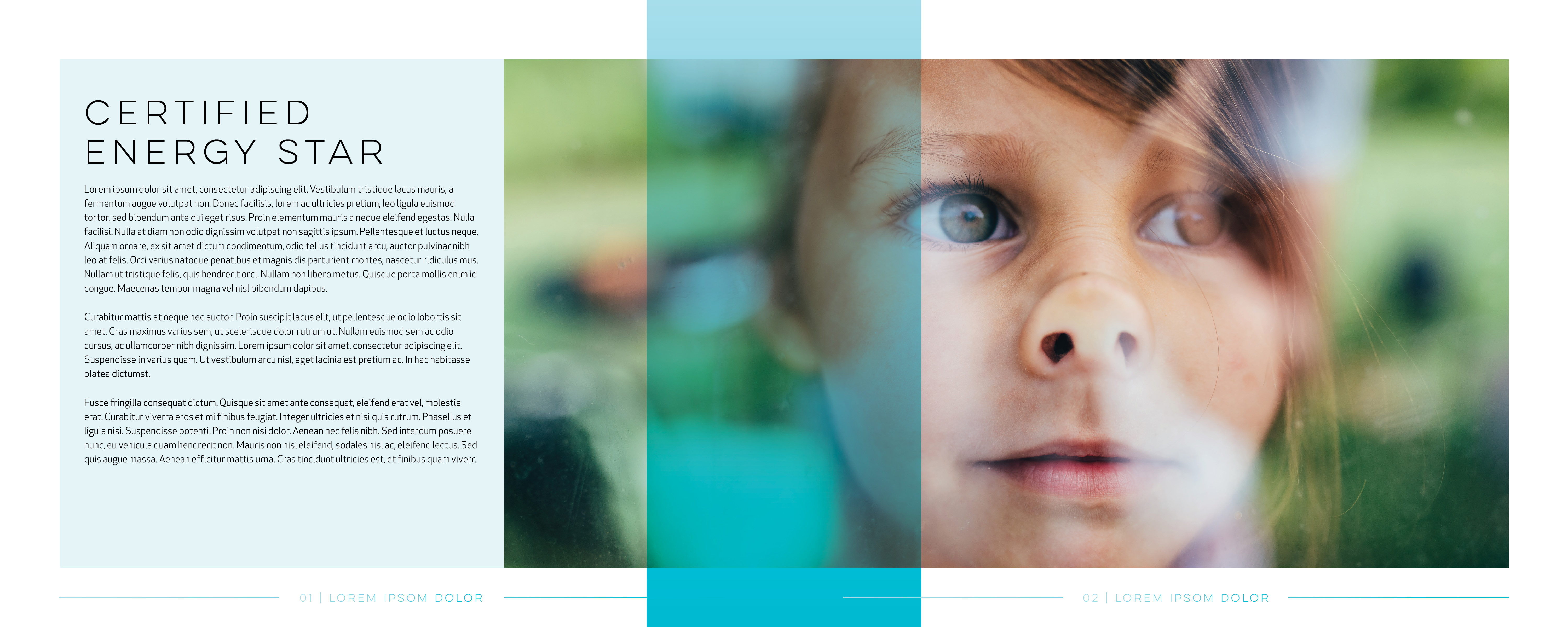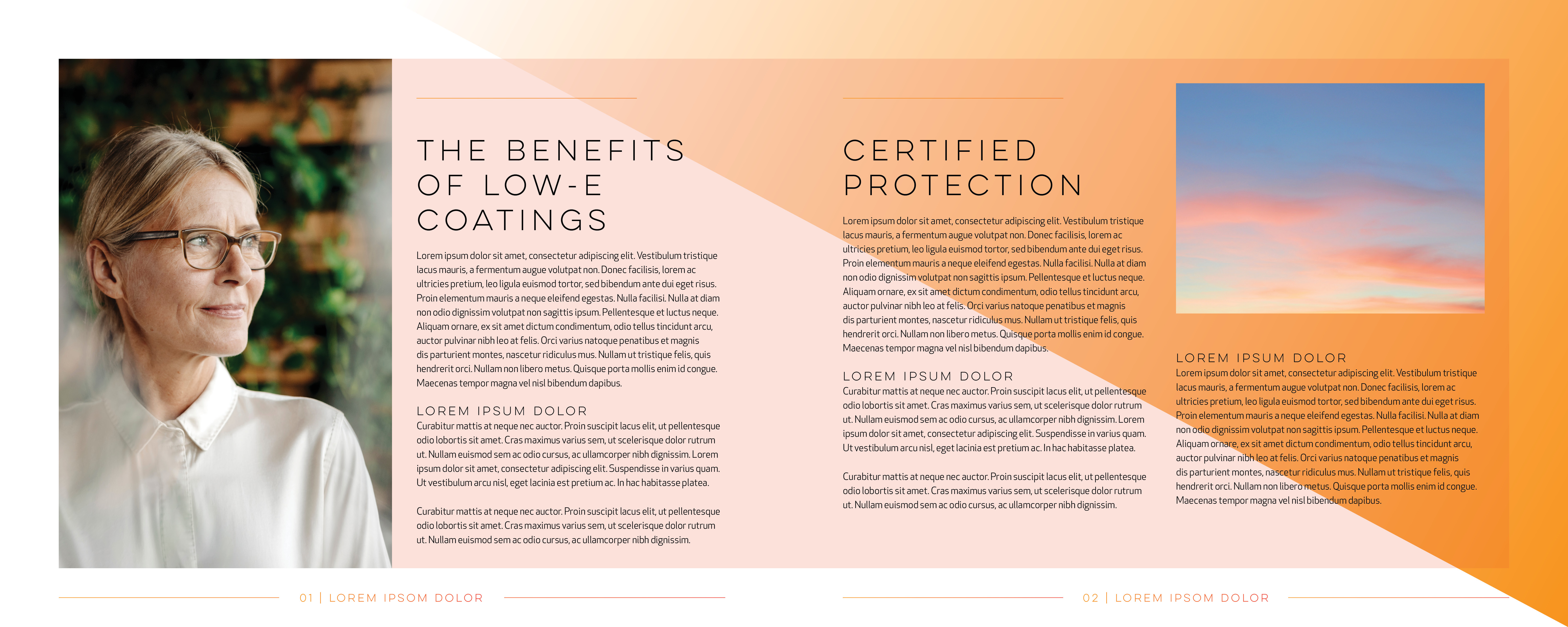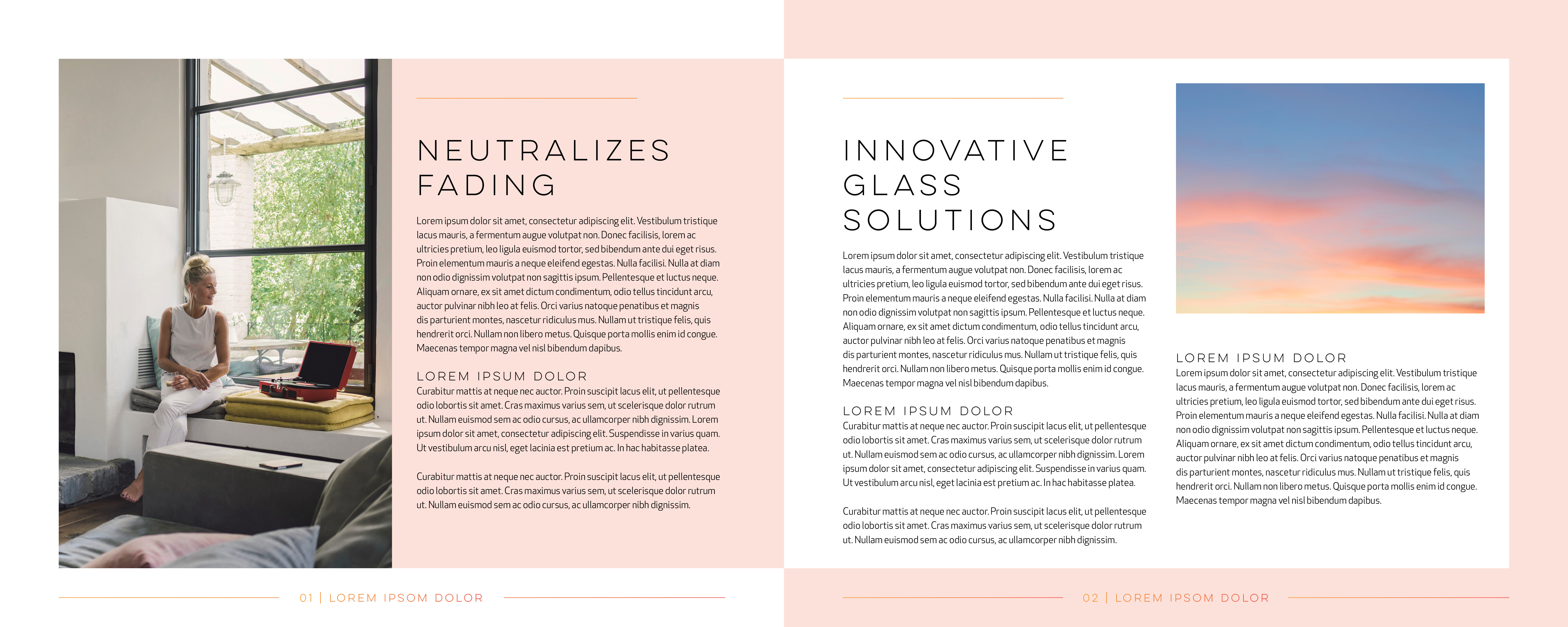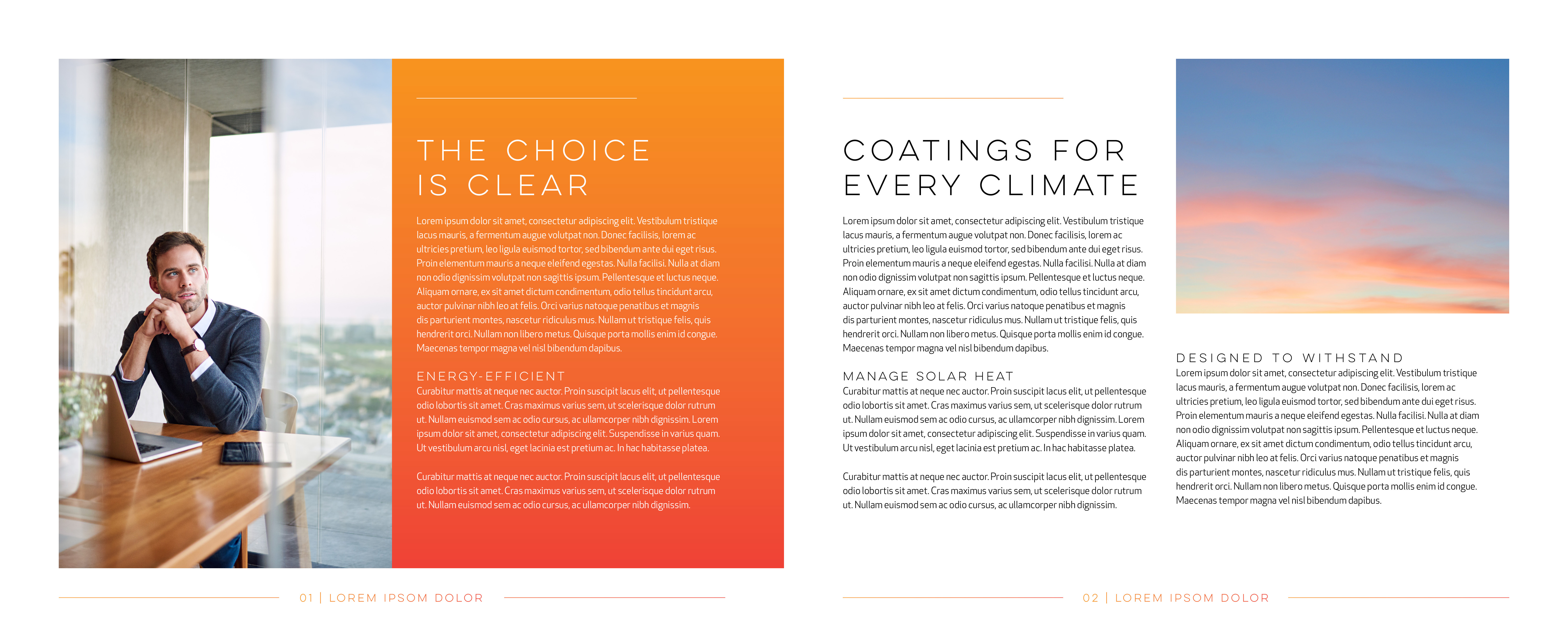 This is a concept brochure for residential customers of Guardian Glass. I used warm and cool colors to help illustrate their many options of coatings for every climate. I chose a collection of family centric and atmospheric photography to emphasize the tagline – There’s so much more behind our glass.