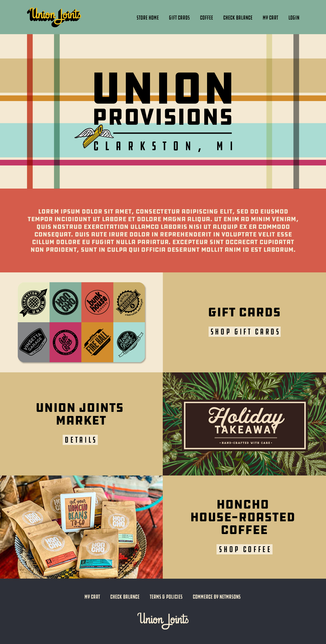 I have designed a number of pieces for the Union Joints, a group of restaurants in the Detroit area. Materials include social media promos, logos, signage, website design and t-shirts.